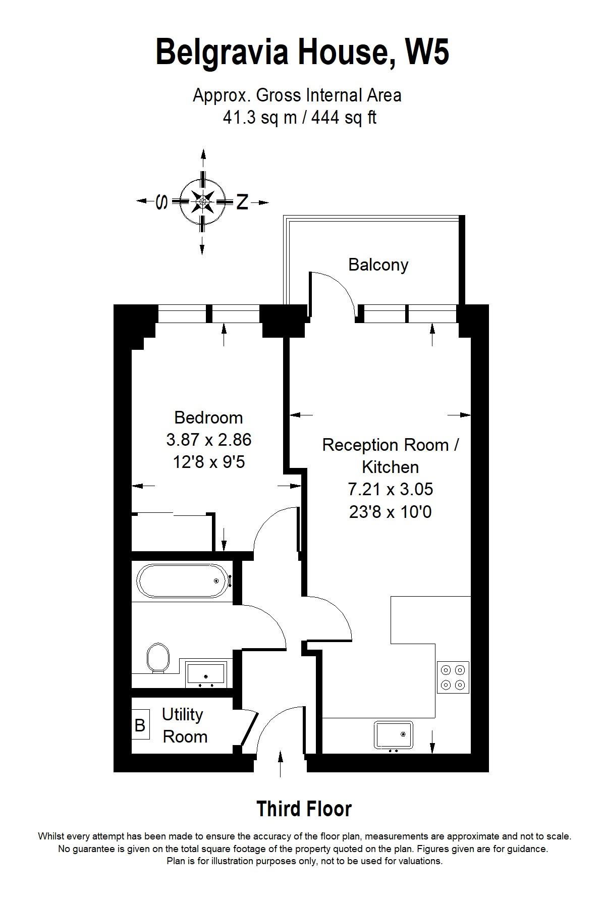 Located on the 3rd floor of a purpose-built block, featuring modern interiors, an open-plan kitchen (oven, microwave, diswasher, fridge and freezer) and living area, a bedroom with built-in storage, a bathroom, utility room (washing machine and dryer), a private balcony.